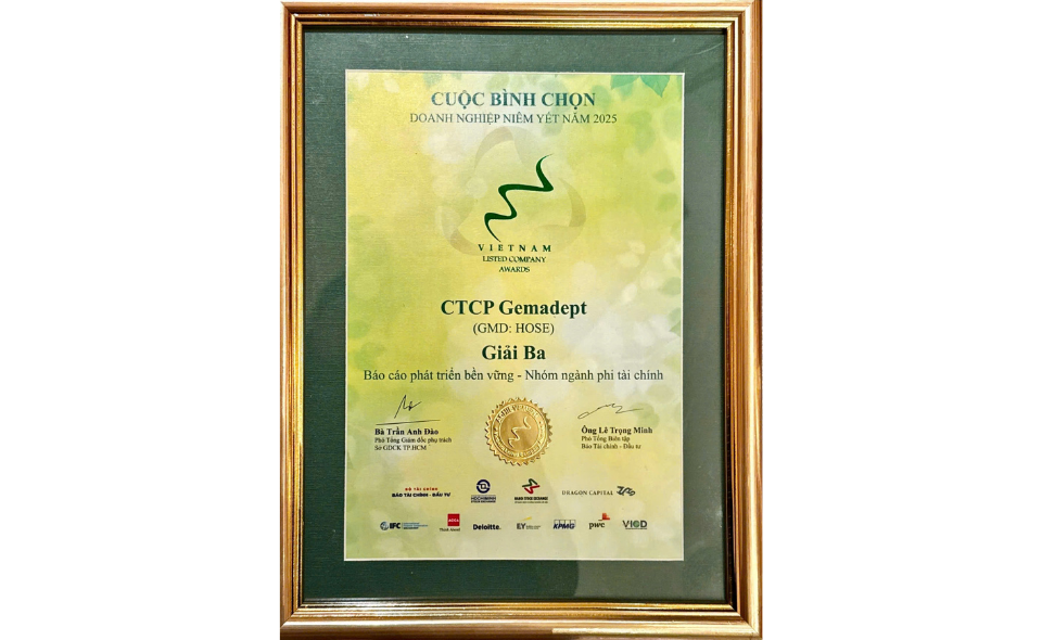 Tiếp tục duy trì phong độ dẫn đầu trong nhóm doanh nghiệp phi tài chính, Công ty cổ phần Gemadept (mã GMD – sàn HOSE) vừa được xướng tên trong TOP 3 Báo cáo Phát triển bền vững tại Cuộc bình chọn Doanh nghiệp niêm yết năm 2025. Giải thưởng do Sở Giao dịch Chứng khoán TP.HCM (HOSE), Sở Giao dịch Chứng khoán Hà Nội (HNX) và Báo Tài chính – Đầu tư đồng tổ chức, ghi nhận những doanh nghiệp có báo cáo minh bạch, chuẩn mực và đóng góp tích cực cho hệ sinh thái phát triển bền vững.