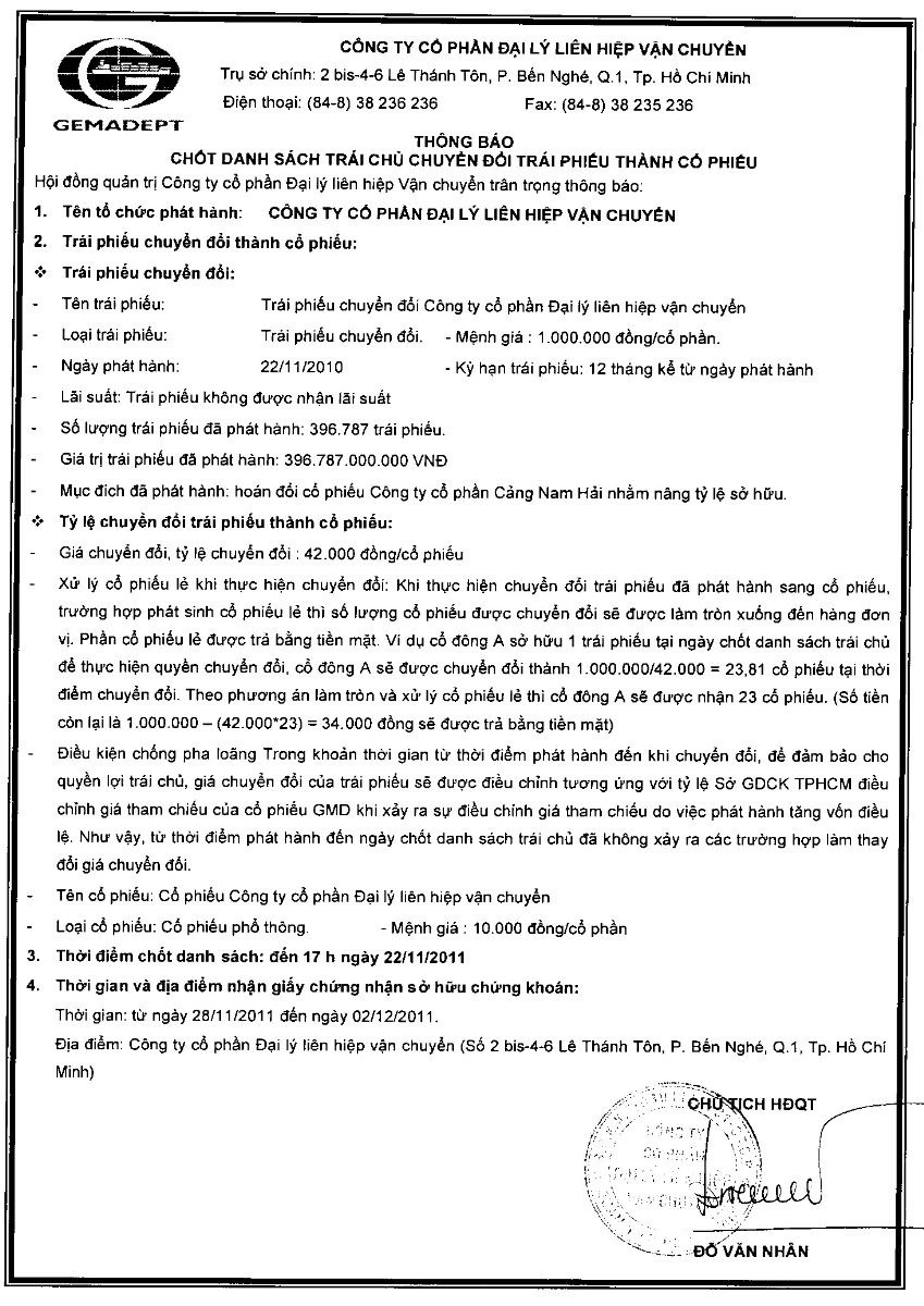 Thông báo chốt danh sách trái chủ chuyển đổi trái phiếu thành cổ phiếu